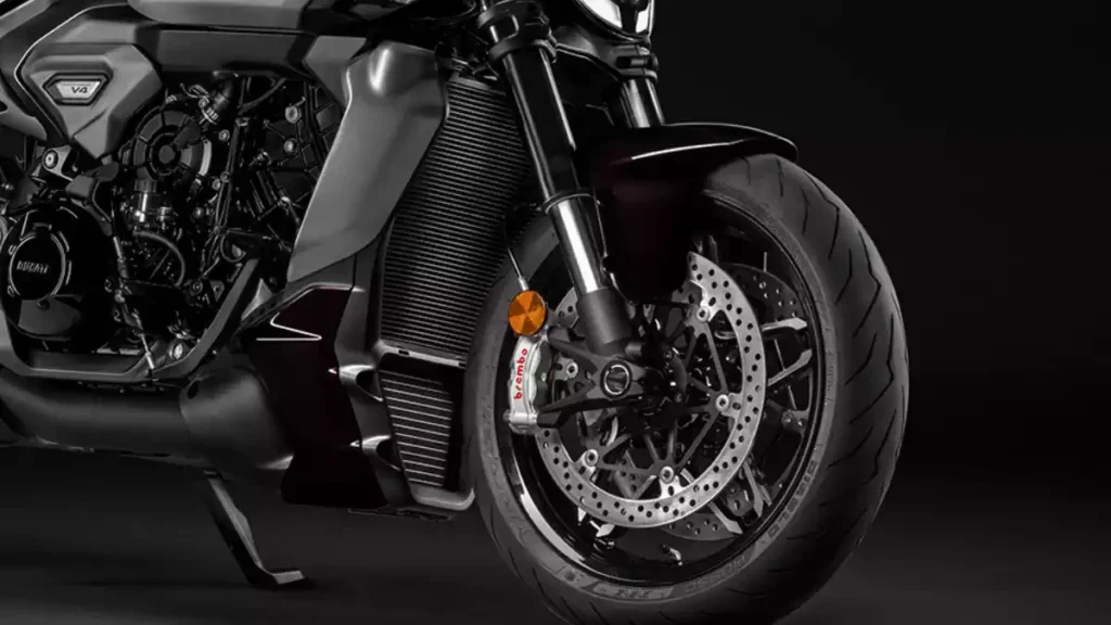 The XDiavel V4 comes with fully adjustable 50mm USD forks in the front and a single-sided swingarm with adjustable monoshock at the rear. Whether you’re hitting a bad patch of road or leaning into a smooth corner, the suspension keeps the ride confident and comfortable.