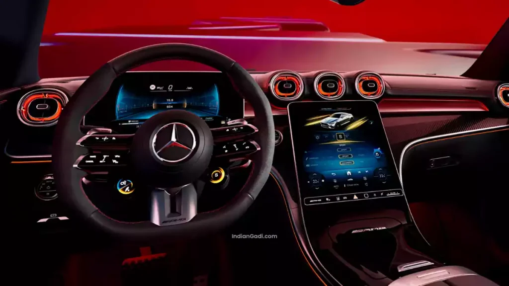 The interior of the Mercedes-AMG CLE 53 Coupe is designed to offer a blend of luxury and advanced technology. The cabin features an 11.9-inch portrait-oriented infotainment touchscreen and a 12.3-inch digital driver’s display, providing access to the MBUX infotainment system. The system supports wireless Apple CarPlay and Android Auto, ensuring seamless connectivity.