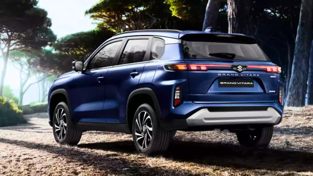 Let’s talk about its design now – the Grand Vitara Hybrid has a bold and premium look that’s already creating a buzz among car lovers. Its road presence is just as stunning as its performance. The front grille is wide and sharp, with signature LED DRLs and a powerful stance that gives it a classy yet sporty look.